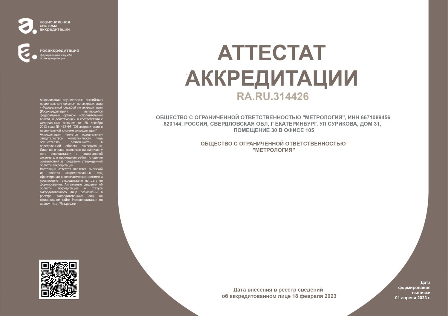 - ЗАПИСЬ В РЕЕСТРЕ АККРЕДИТОВАННЫХ ЛИЦ RA.RU 314426